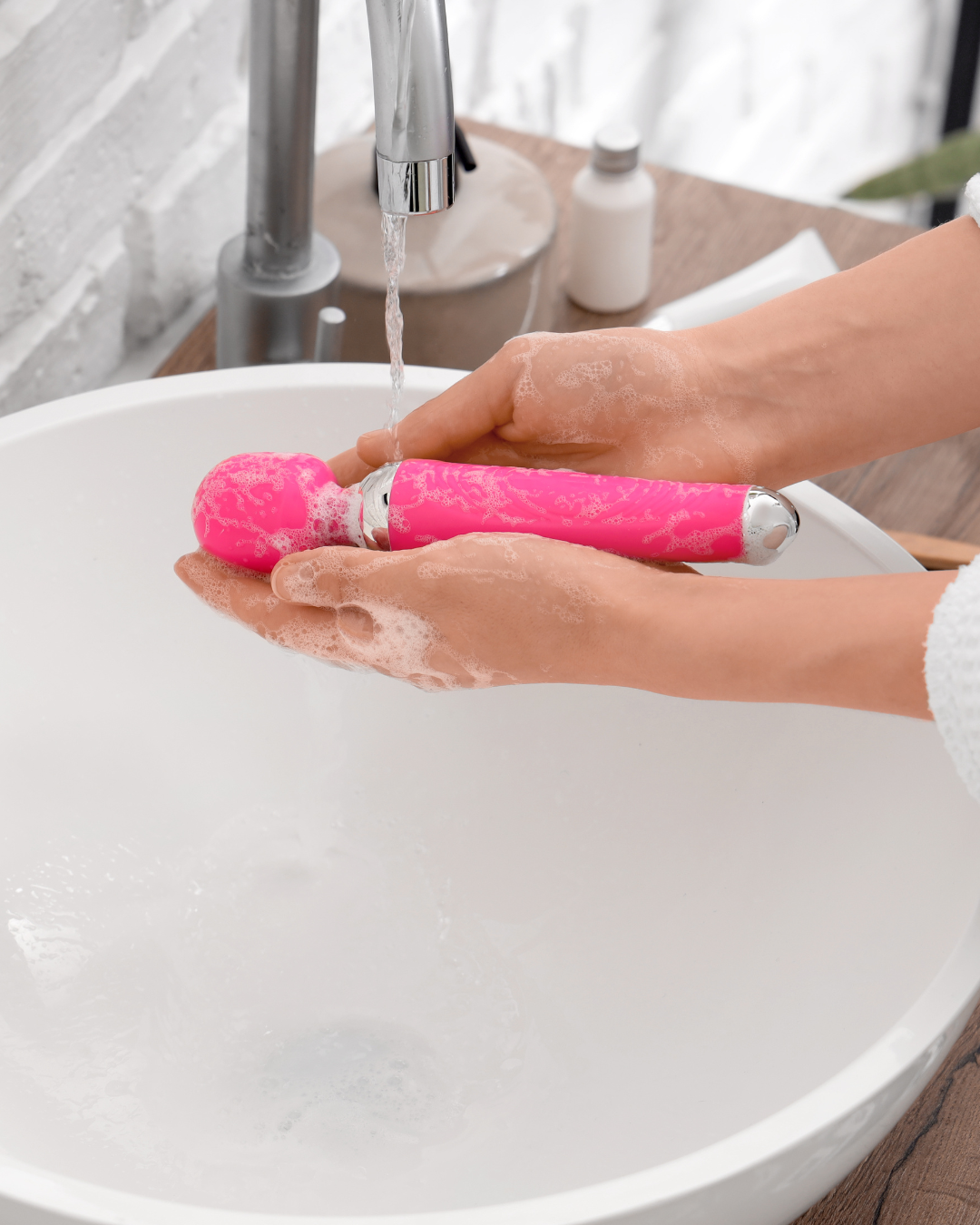 Lava tu vibrador antes y después de cada uso con agua tibia y jabón neutro o un limpiador específico para juguetes.